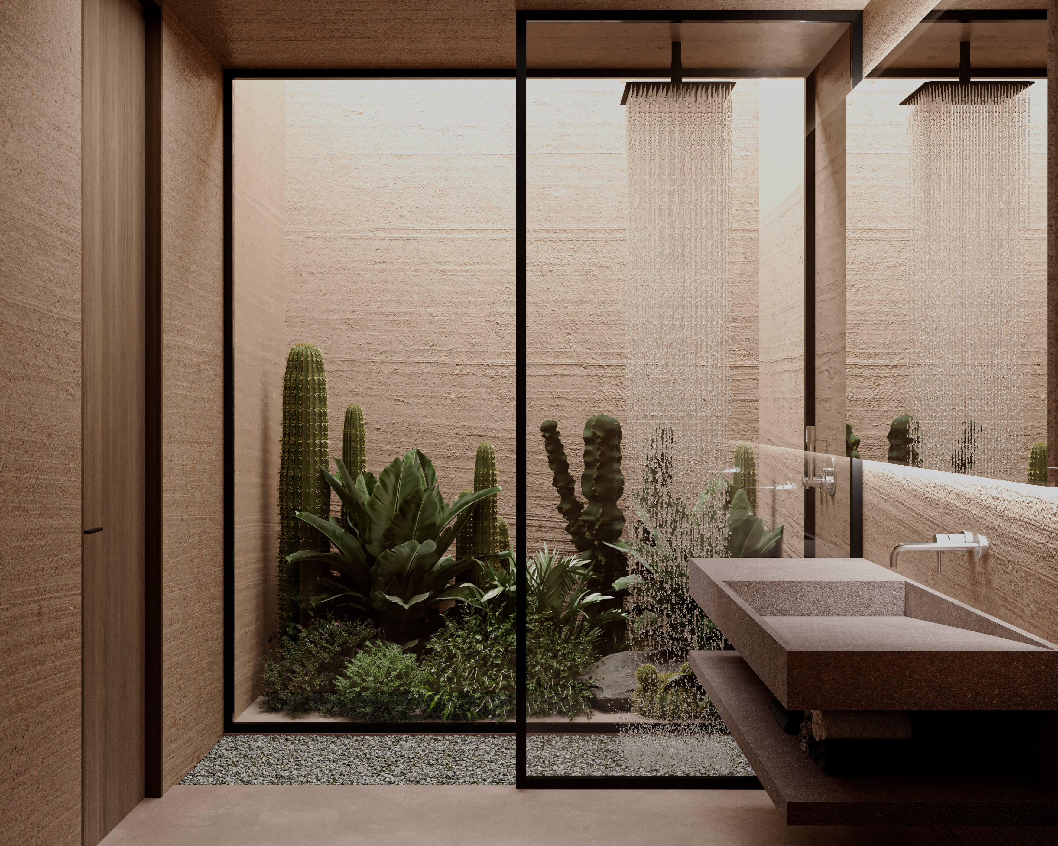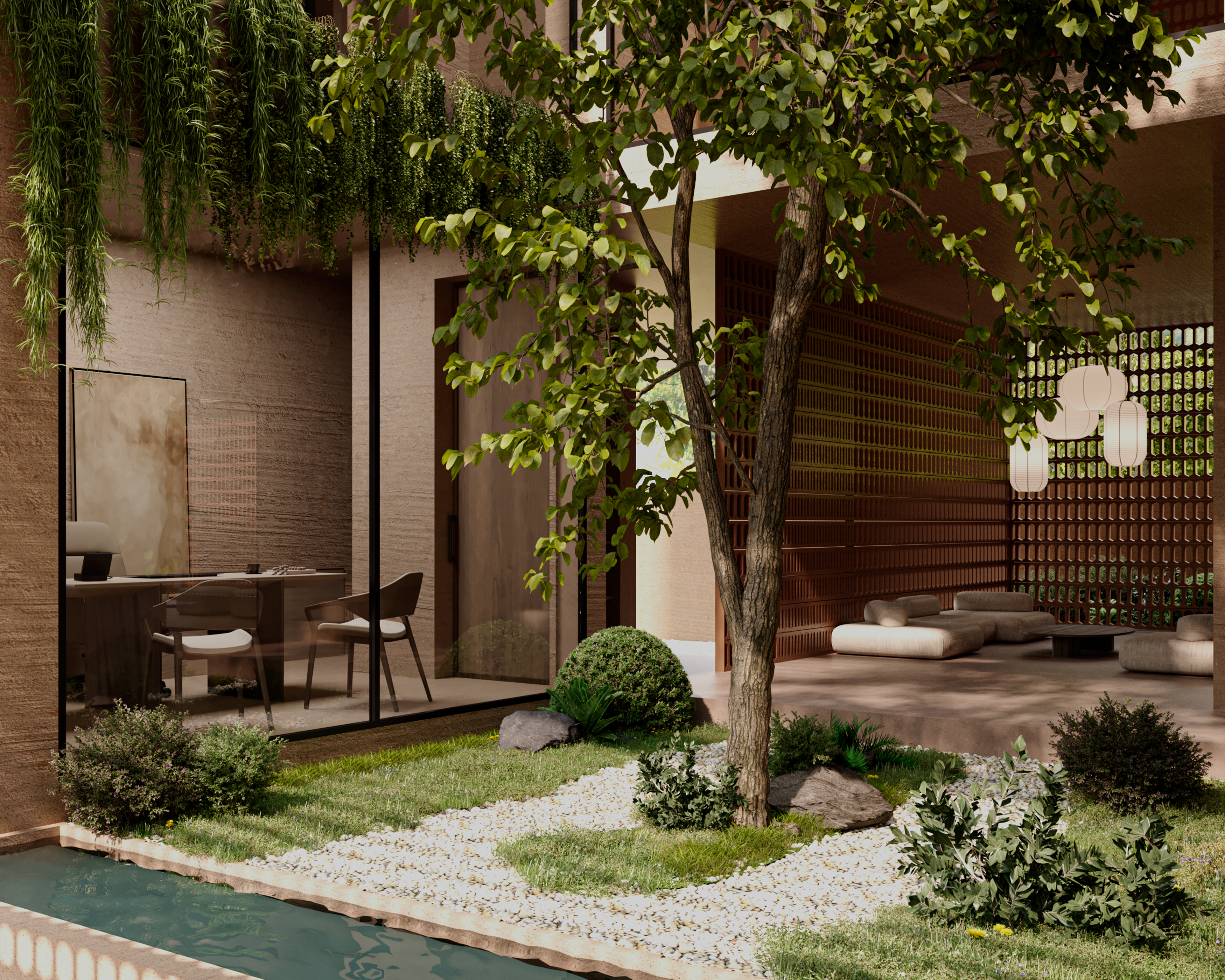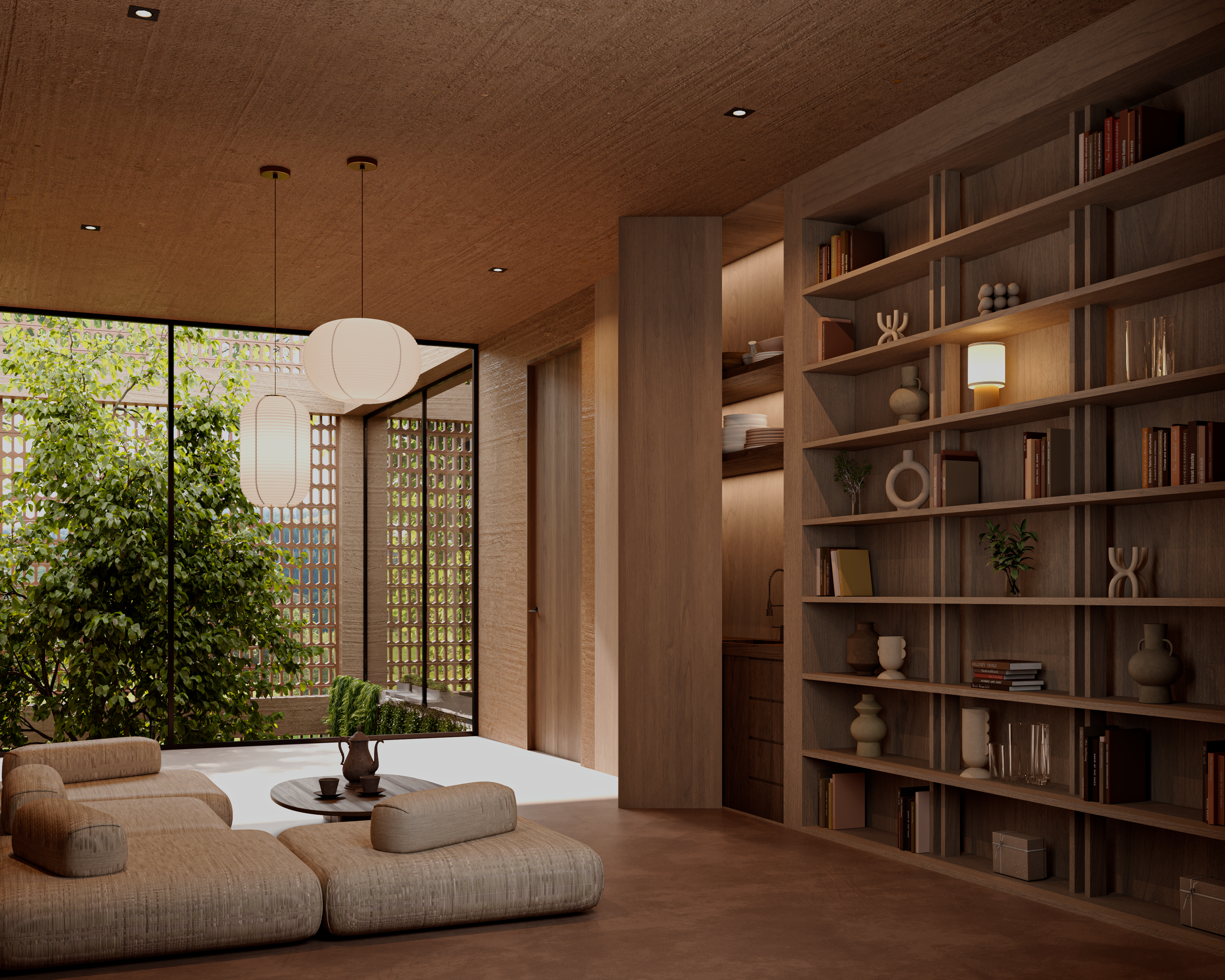 Every material decision-earth blocks, terracotta, reclaimed wood is guided by craft and climate logic. Inspired by vernacular intelligence but shaped for contemporary life, the home offers a dignified, sustainable way of living in tune with its place. It breathes, shades, and reveals itself slowly becoming a living response to desert rhythms