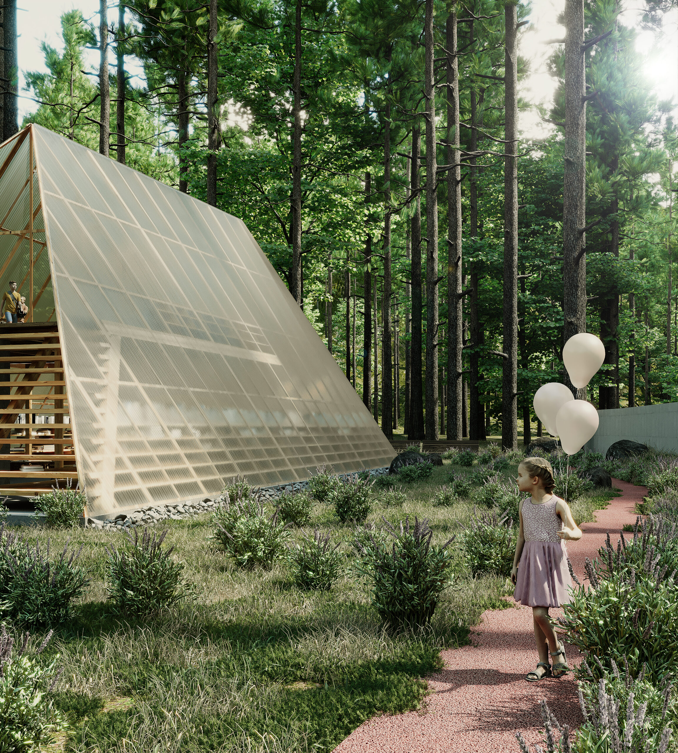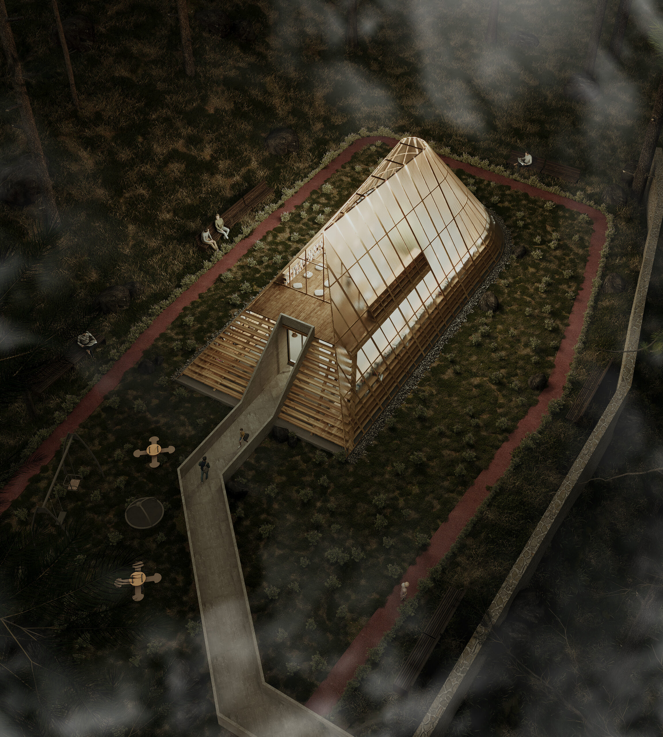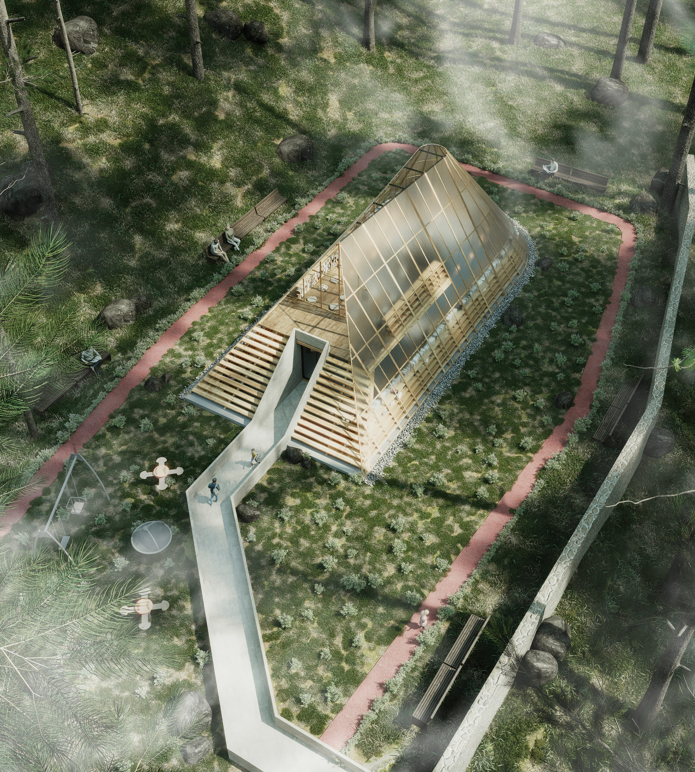 Rooted in ecological sensitivity, the Tirchakhet Community Library reimagines public architecture as a living system-resilient, adaptive, and deeply integrated with its Himalayan context. Drawing from local A-frame vernacular forms, the design combines recycled polycarbonate, pine wood, and reused concrete in a spatial choreography that embraces light, warmth, and circulation. Passive heating, rainwater harvesting, and solar-powered systems reduce dependence on mechanical infrastructure. The library’s architecture dissolves into the surrounding landscape through permeable walkways, green pockets, and bioinfiltration zones, creating a dynamic interplay between structure and nature-a quiet yet powerful call for regenerative design.